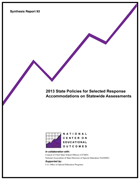 NCEO Synthesis Reports: 2013 State Policies for Selected Response Accommodations on Statewide Assessments (#93)A report providing information on selected response accommodations (i.e., Human Scribe, Speech to Text, Audio Transcription, Grammar Checker, Spell Checker, Calculator) that were included in state policies in 2013 for reading/ELA, math, and writing assessments. NCEO has been tracking and analyzing states' policies on assessment accommodations since 1992.