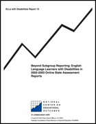 NCEO English Language Learners (ELLs) with Disabilities Reports: Beyond Subgroup Reporting - English Language Learners with Disabilities in 2002-2003 Online State Assessment Reports (#10)This year 2005 report describes the extent that states report participation and performance data for English learners with disabilities for state administered tests in 2002-2003 public assessment reports.